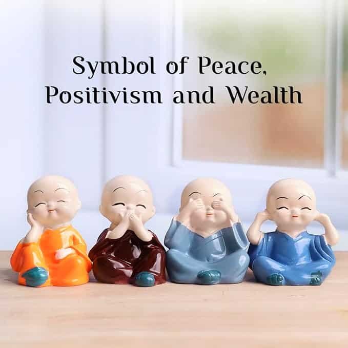 Buddha Baby Monk Statues Set of 4 – Decorative Meditating Monk Idols for Home, Office, or Car Dashboard